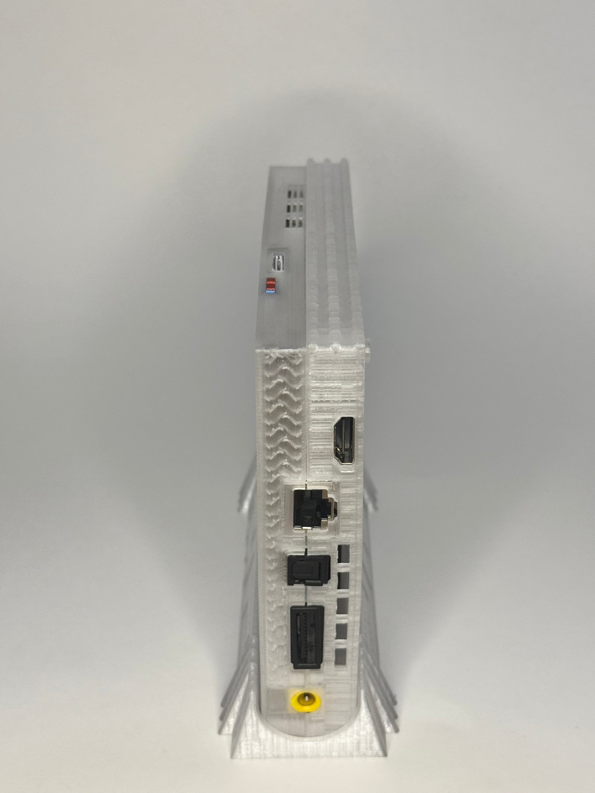 “The Phantom Station” Ultra Slim PS2 - Inspired by the ghost cases for the xbox, this Phantom Station Ultra Slim PS2 somehow allows semi-transparency to still be the most eye catching thing in the room. & I know what you’re thinking, “What is an Ultra Slim PS2?”, and “IS THAT AN HDMI OUTPUT ON A PS2?!” and maybe even “bro that’s sick lol” (thank you, we know).